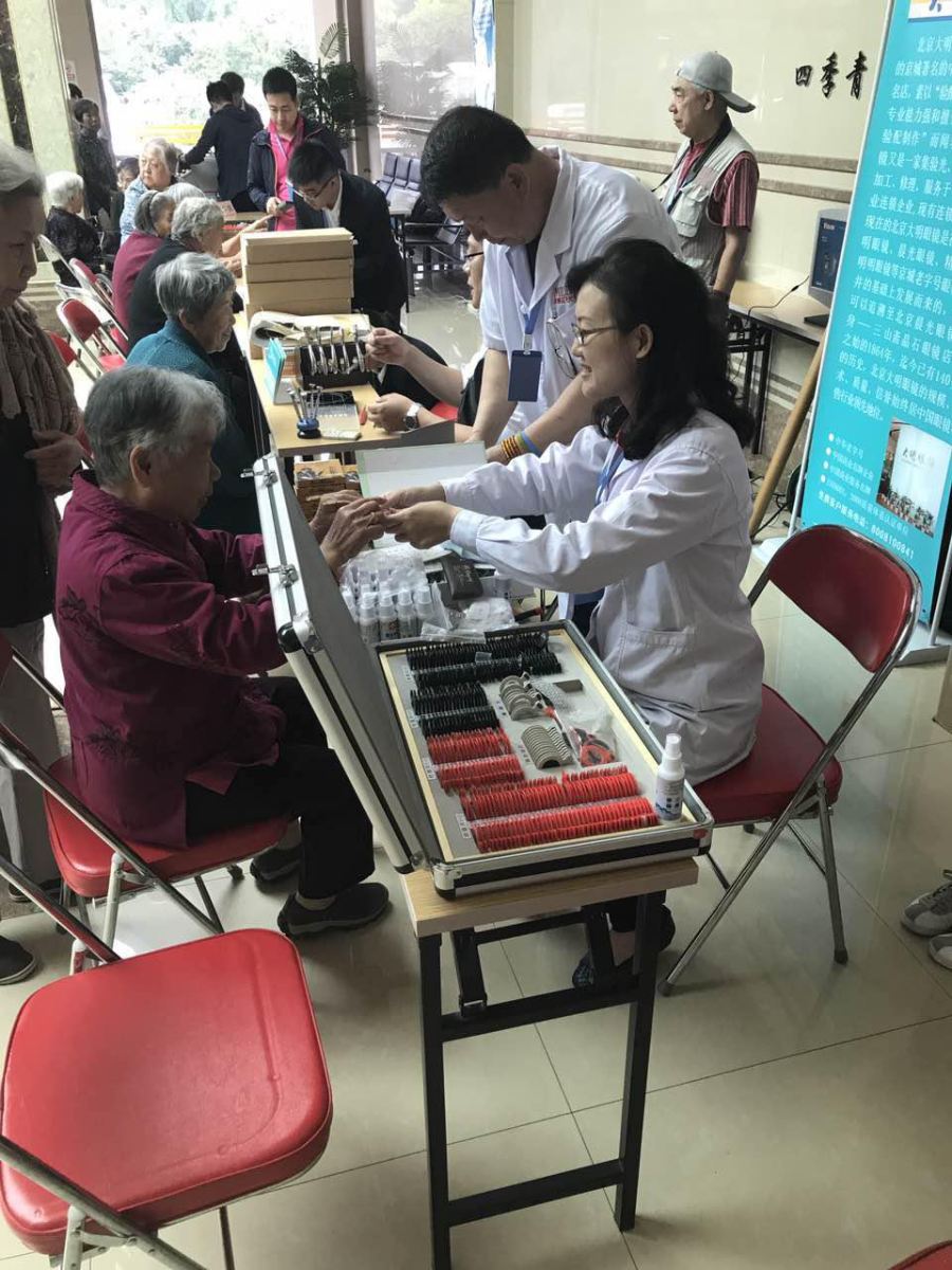 活動(dòng)伊始,美麗島相關(guān)代表協(xié)同北京眼鏡協(xié)會(huì)同仁在活動(dòng)總指揮劉多寧會(huì)長(zhǎng)的帶領(lǐng)下來到了四季青敬老院,美麗島全體同仁懷著對(duì)老年群體的關(guān)懷之心,本著眼鏡行業(yè)從業(yè)者的工匠精神,用真誠(chéng)的心接待每一位前來的老人。通過專業(yè)視光顧問的檢測(cè),我們發(fā)現(xiàn)很多老年人都存在一定程度的眼部問題,還有一些老年人由于沒有定期復(fù)檢光度,長(zhǎng)期佩戴一副眼鏡,加之日常保養(yǎng)做得少,其鏡片和鏡框都或多或少出現(xiàn)一些損傷,有些老人家的鏡片光度已經(jīng)遠(yuǎn)遠(yuǎn)不夠用。針對(duì)這些問題,到場(chǎng)的美麗島團(tuán)隊(duì)貼心的為他們進(jìn)行了眼鏡清洗養(yǎng)護(hù),并捐贈(zèng)400份價(jià)值22320元的美麗島鏡片護(hù)理劑套裝,以確保他們?nèi)蘸罂梢噪S時(shí)進(jìn)行清洗保養(yǎng),同時(shí)針對(duì)老人家普遍眼疲勞的狀況,捐贈(zèng)了具有緩解視疲勞效果的眼貼,讓他們擁有更加清晰的視覺,看到更美麗的風(fēng)景,安享晚年生活。